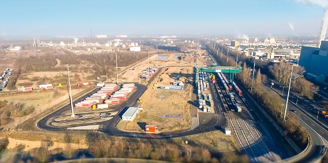 Von rund 76.000 Tonnen Gesteinskörnungen, die für den Erweiterungsbau des KV-Terminals Köln-Nord benötigt wurden, konnten mehr als 75 % durch Recyclingbaustoffe ersetzt werden. Das, zusammen mit der örtlichen Nähe des Lieferanten |