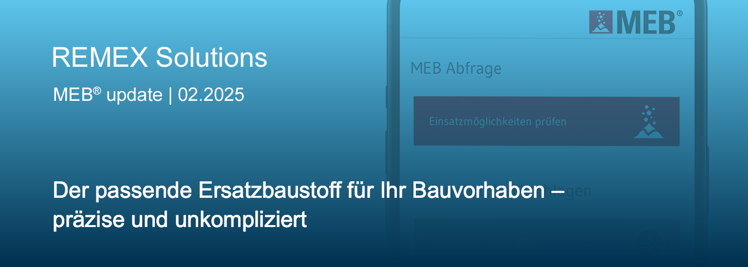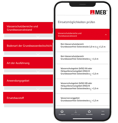 Deshalb haben wir jetzt die MEB Einbau App entwickelt. Mit dieser digitalen Arbeitshilfe können Sie mit wenigen Klicks die Anwendungsmöglichkeiten von Ersatzbaustoffen abfragen.