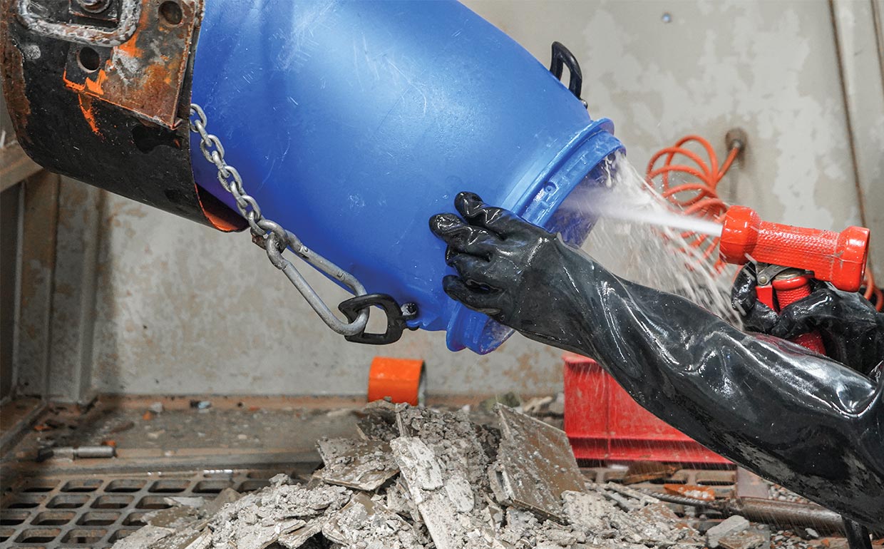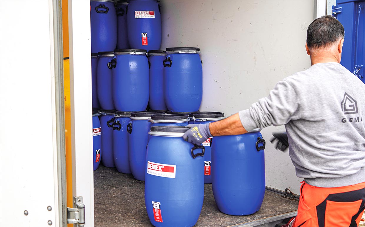 Mit der Einführung von Mehrwegfässern in diesem Jahr eröffnet REMEX eine vollständig neue Methode, die Abfälle sicher von der Baustelle zum Entsorger zu transportieren. Die Fässer fassen rund 30 l, sind auf Paletten stapelbar und werden für den Transport mit einer Verplombung gekennzeichnet. Für die Annahme, Lagerung und Reinigung der Fässer wurde die Baseler Anlage entsprechend umgebaut, was auch zur Optimierung des Gesamtprozesses beigetragen hat. „Unser Service ist kostenfrei und funktioniert als Pfandsystem. Kunden erhalten die für das Sanierungsprojekt notwendige Anzahl von Fässern. Sie liefern die gefüllten Fässer bei uns an und können im gleichen Zug gereinigte, leere Fässer mitnehmen“, erläutert Björn Brecht, der seit Mai 2022 die Leitung der Asbestanlage innehat.