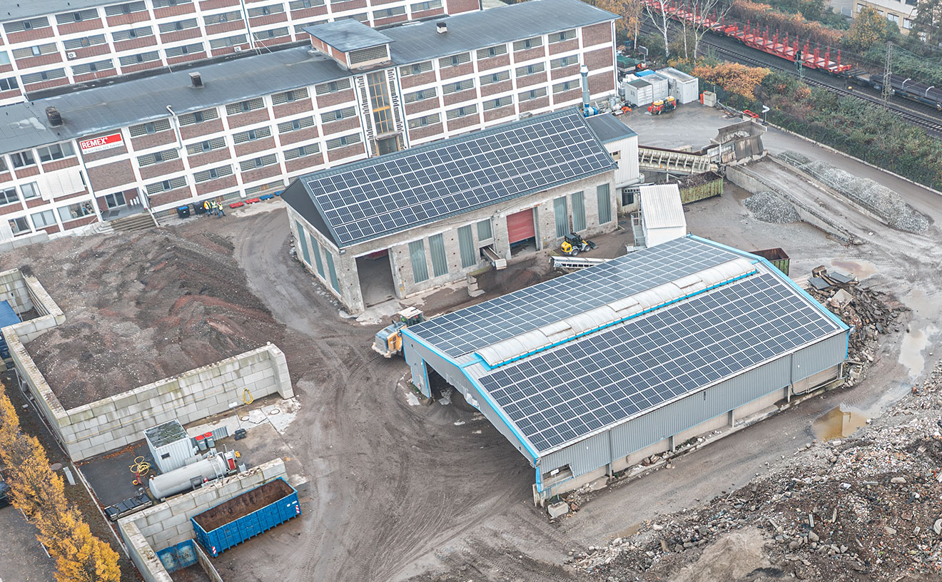 Nicht alle unsere Anlagen bieten die Voraussetzung für die Installation von Photovoltaikelementen. In der Essener Betriebsstätte Hövelstraße gibt es zwei Hallen, die die statischen Voraussetzungen erfüllen und ausreichend Platz für 476 PV-Elemente bieten. Die seit Sommer dieses Jahres installierte Leistung beläuft sich auf 176 kWp. An idealen Tagen können damit 82 % des täglichen Stromverbrauchs, über den Jahresverlauf gut 50 % des gesamten Stromverbrauchs selbst erzeugt werden, was annähernd zu einer Halbierung der CO2-Emissionen aus Strom führt. Im Ergebnis zeigt sich eine Reduktion der Gesamtemissionen in Essen um 15 %. Insgesamt betreibt die REMEX-Gruppe an fünf Standorten Photovoltaikanlagen und kann damit jährlich auf eine installierte Spitzenleistung von 1,5 MWp zurückgreifen.